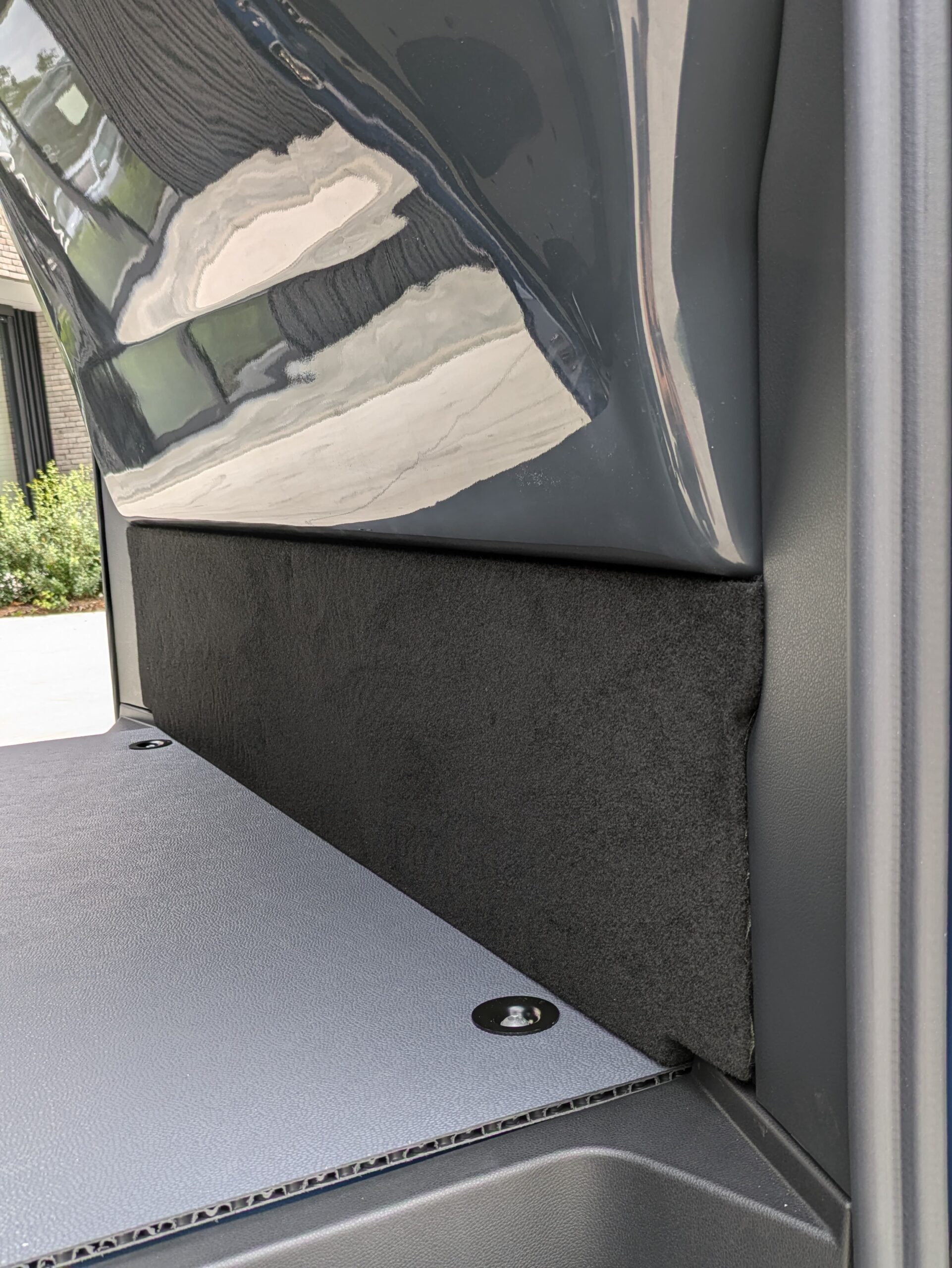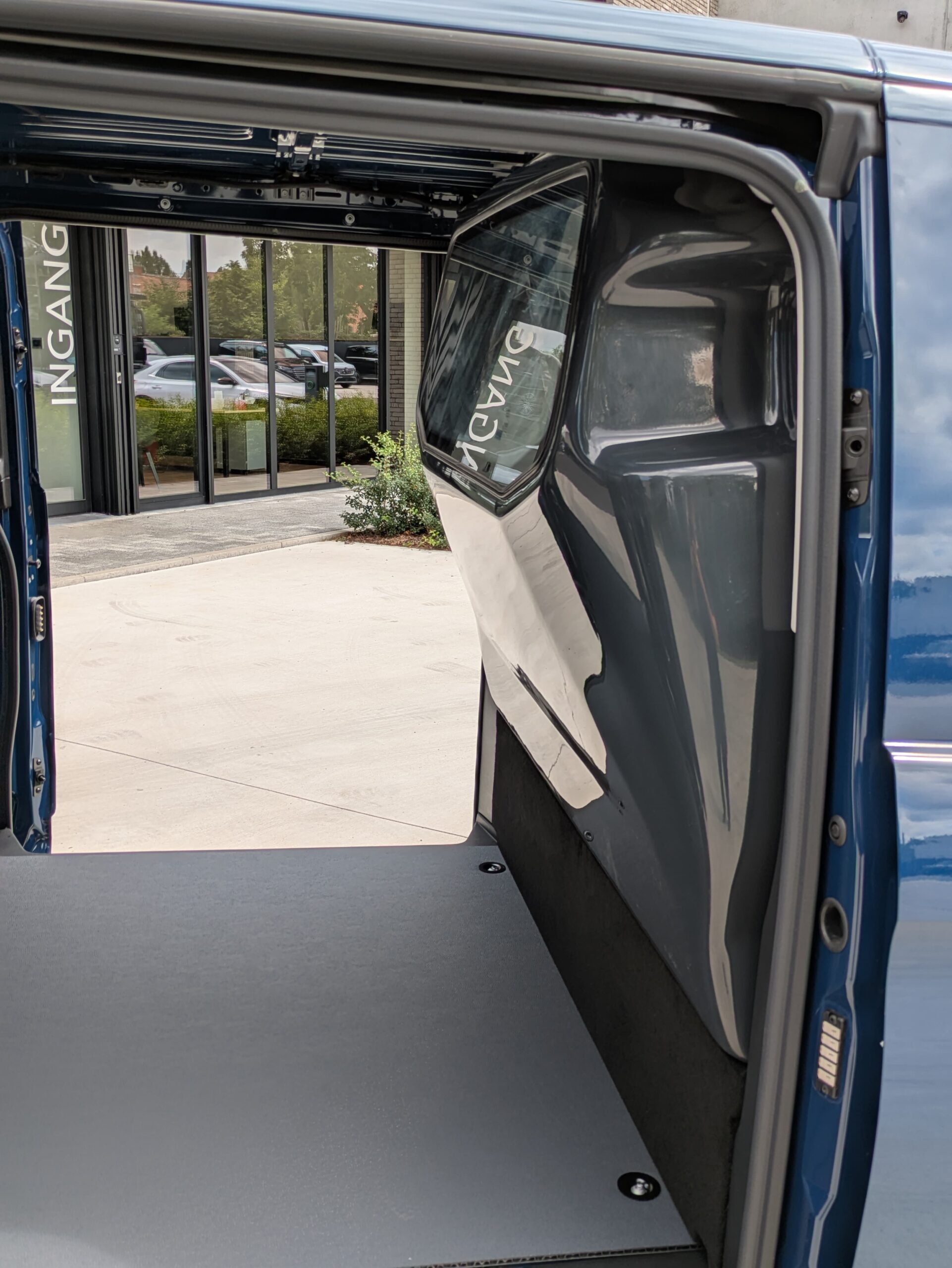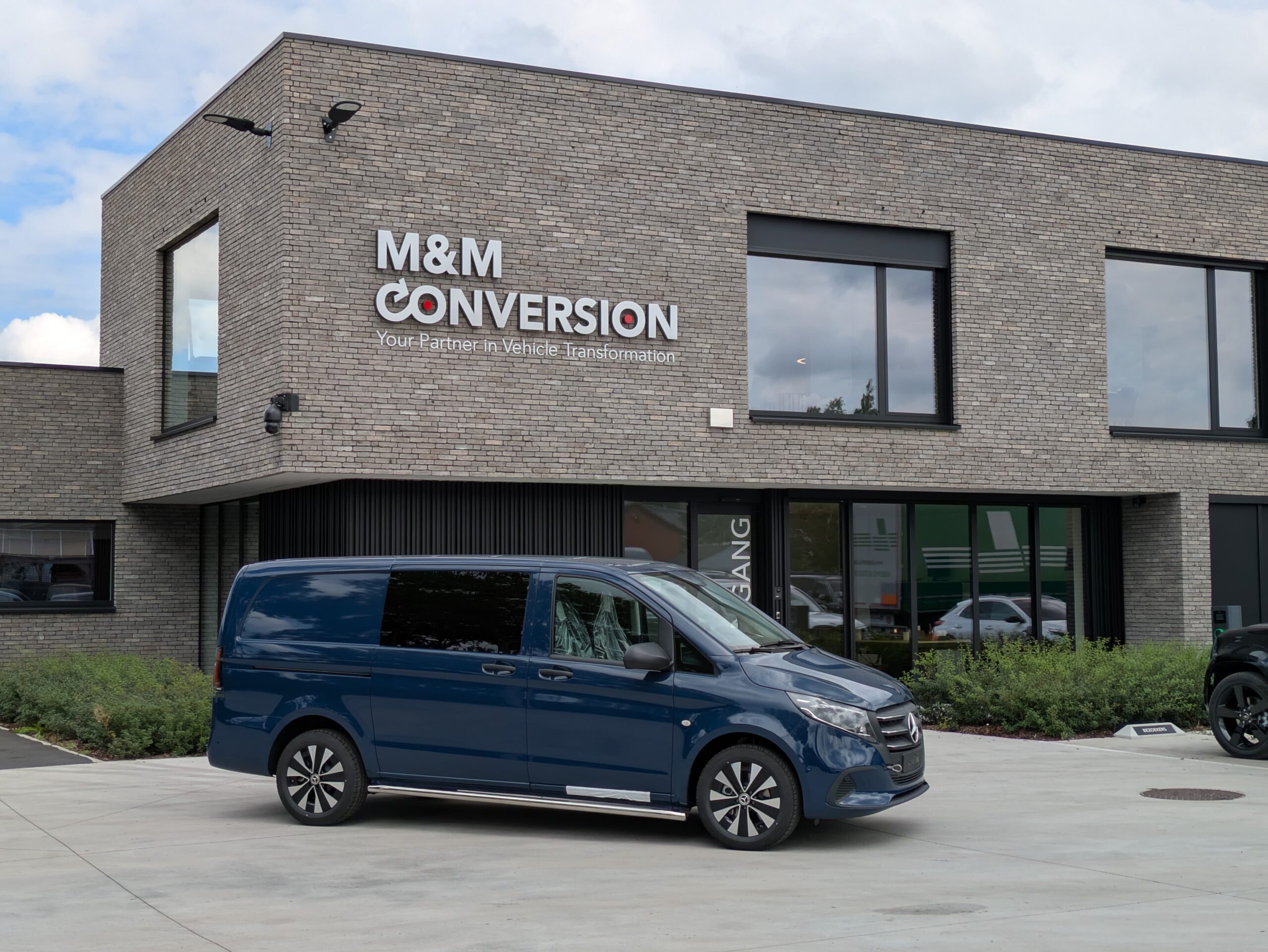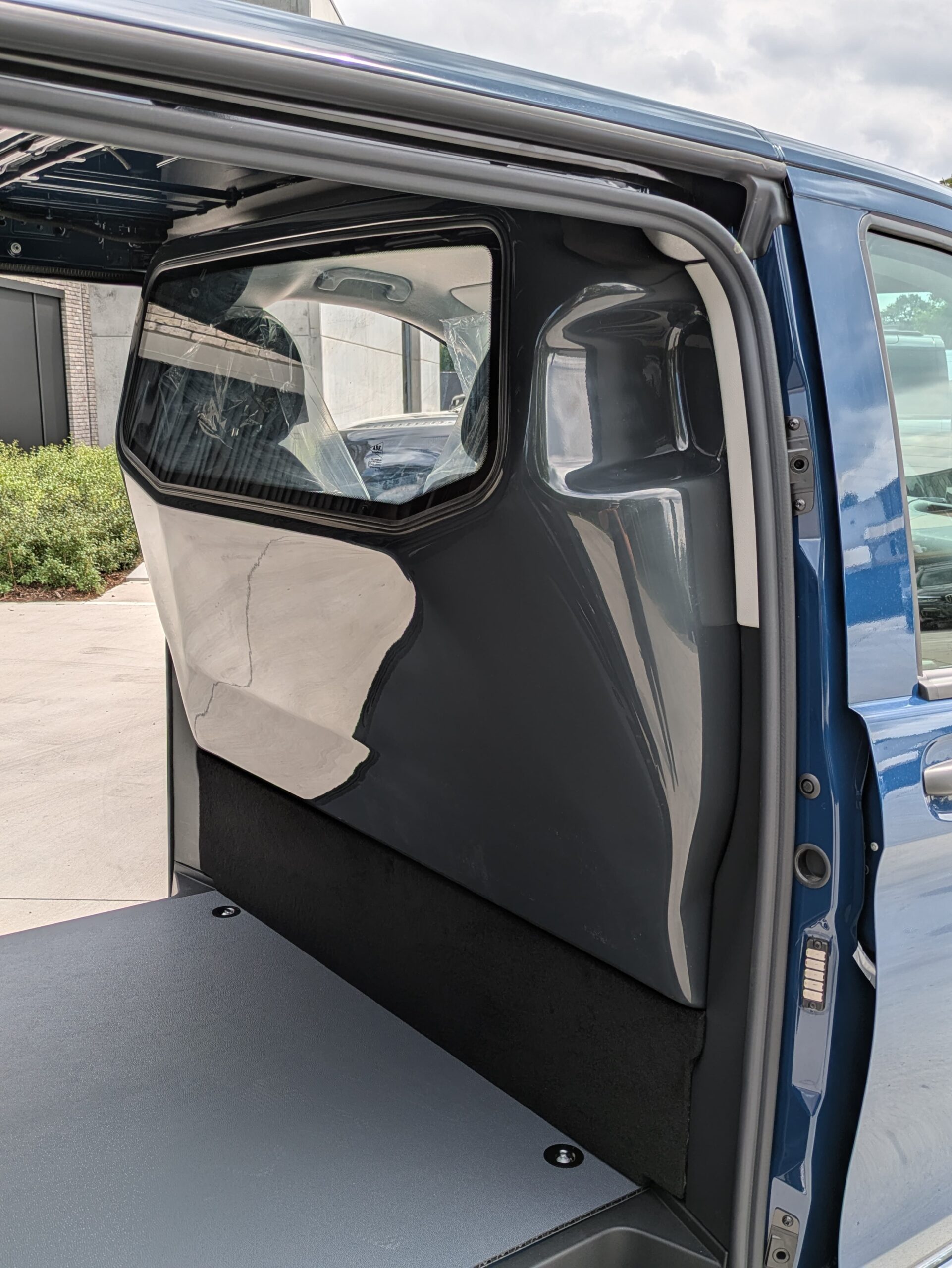 Dit model Vito werd voorzien van een B-stijl scheidingswand na de bestuurder. De bestuurder beschikt over 20 cm meer ruimte om zijn stoel naar achteren te plaatsen dan de standaard wand af fabriek. Kan een handige oplossing zijn voor bepaalde bestuurders. Daarnaast werd het voertuig ook voorzien van sidebars als extra beveiliging voor het voertuig.